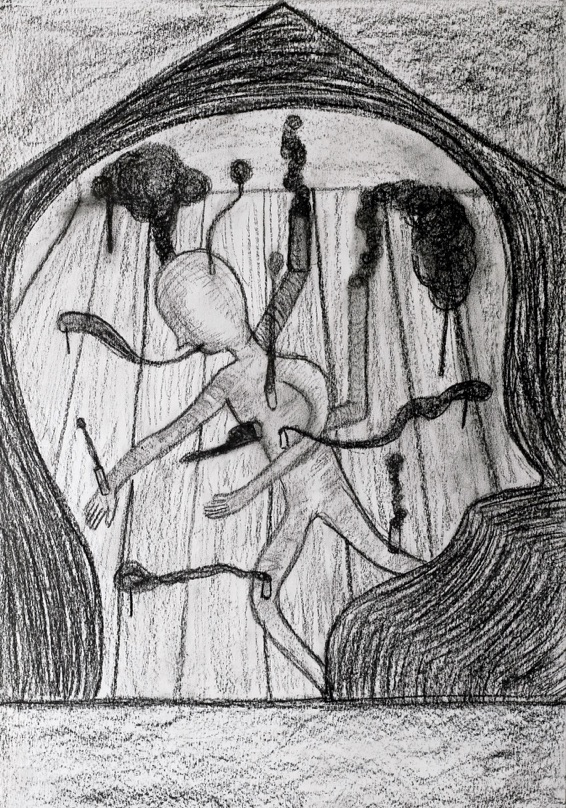 2021 – "A picture you might have drawn (Incarceration of soul) - 57" 59 x 42 cm, Oil pastel on paper