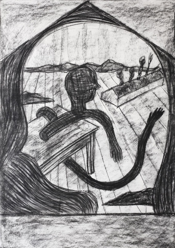 2021 – "A picture you might have drawn (Incarceration of soul) - 98" 59 x 42 cm, Oil pastel on paper