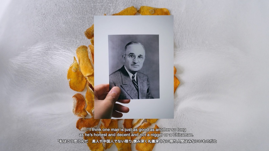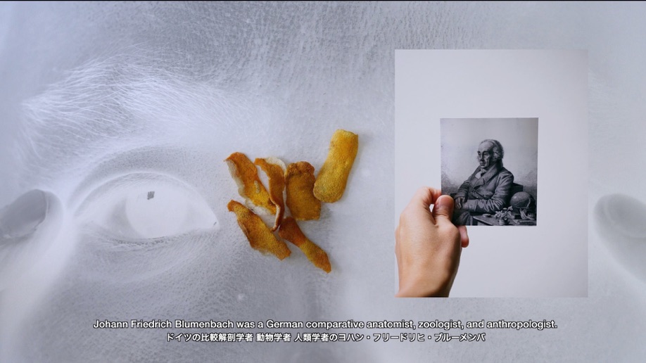 この映像作品は、18世紀にヨーロッパで確立された「黄色人種」という人種概念の歴史 と、19世紀後半に欧米で台頭したアジア脅威論「黄禍論」のリサーチをもとに制作しまし た。私が住んでいたドイツでは、COVID-19のパンデミック直後からアジア系への差別が多発し、その後私はヨーロッパ社会におけるアジア人差別の歴史に興味を持ち、この映像作品の制作に取りかかりました。