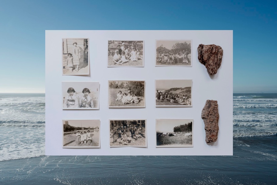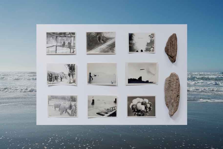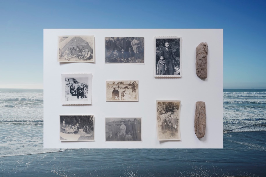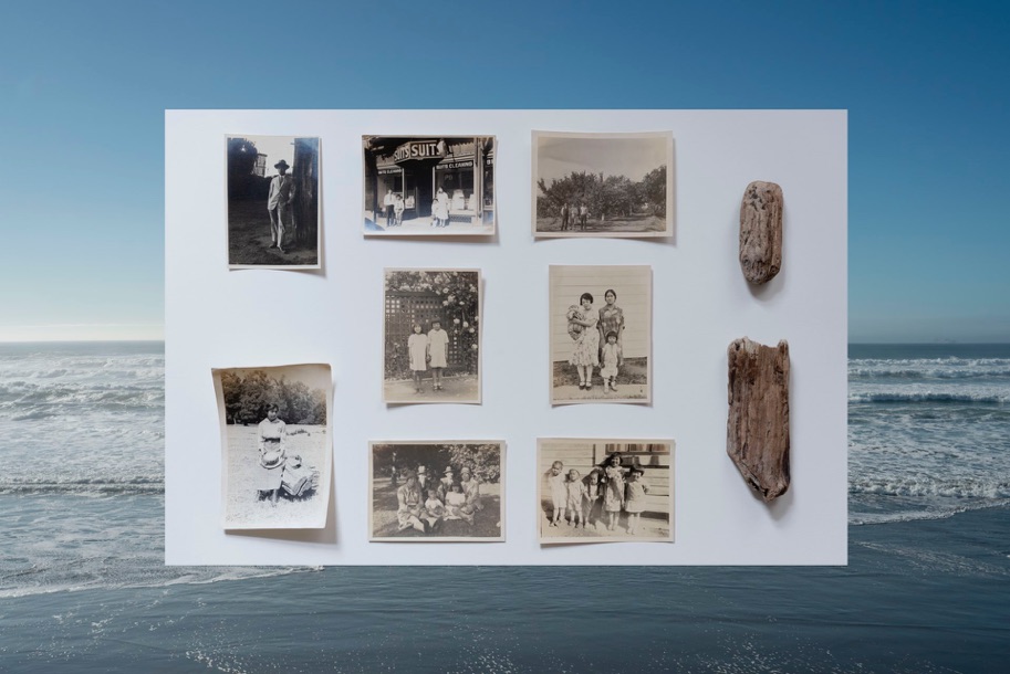 私の曾祖父は1907年から1954年までアメリカ合衆国に住み、その大半をサンフランシスコ・ベイエリアで過ごしました。本作は、曾祖父がアメリカで移民として過ごしていた時期に撮影された写真、私がサンフランシスコ・ベイの海岸で収集した流木、そして同地で撮影した海の写真で構成されています。